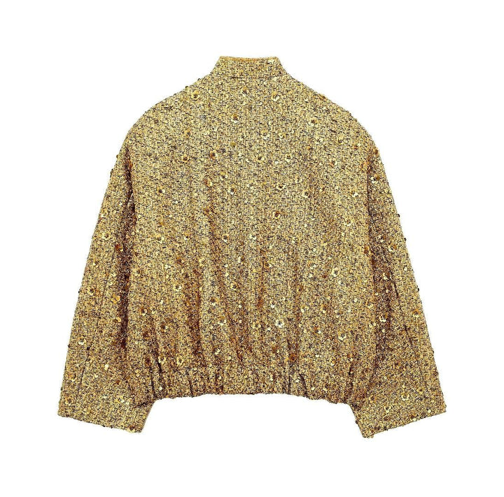 Özel günler için veya cesur bir açıklama yapmak istediğinizde mükemmel olan bu lüks payet süslemeli tüvit ceketle altın gibi parlayın. Özel dikim kalıbı ve şık, modern tasarımıyla bu ceket, sofistike görünümü göz alıcı bir dokunuşla birleştiriyor. Unutulmaz bir görünüm için zarif bir pantolon veya şık bir etekle eşleştirin!