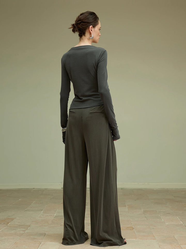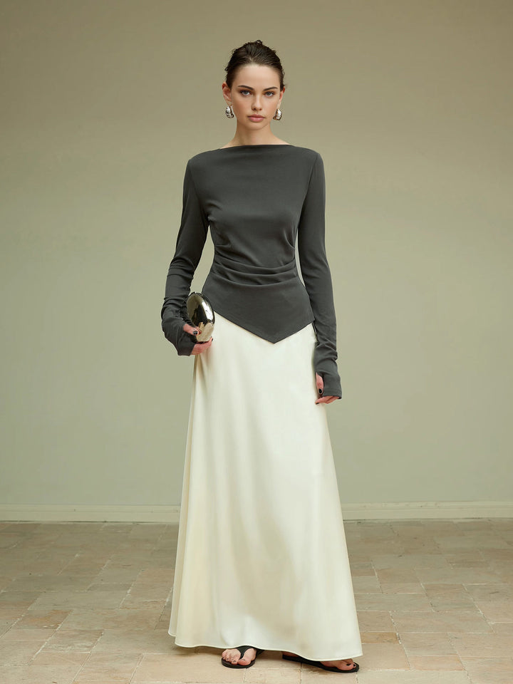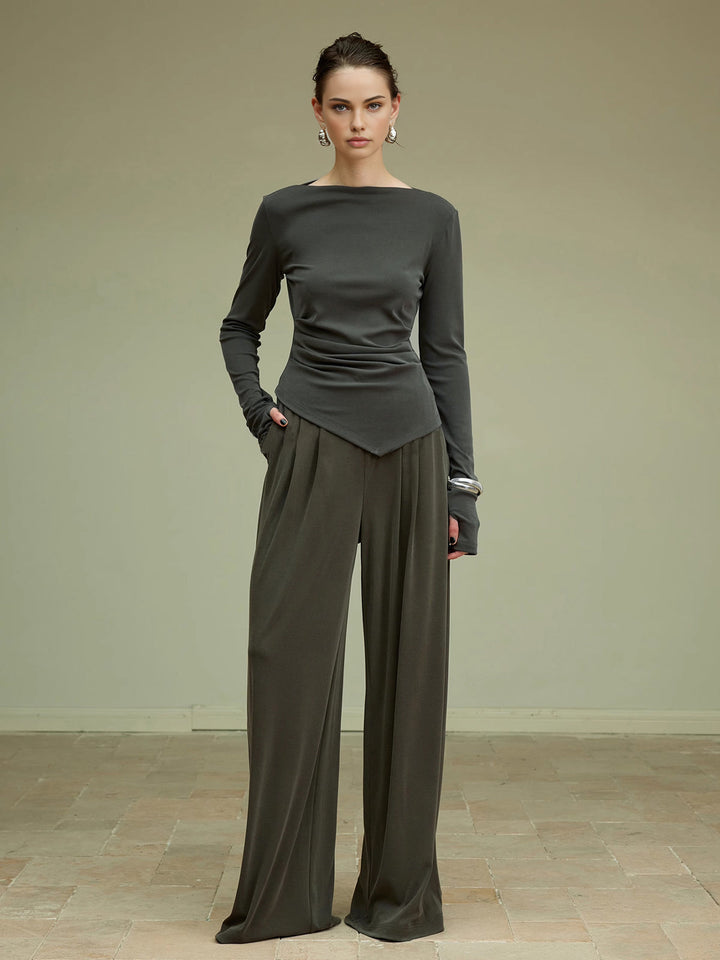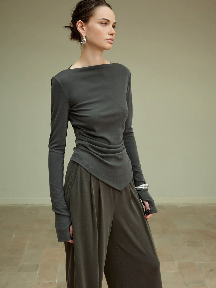 Minimalist çizgilerle modern şıklığı buluşturan bu antrasit bluz, asimetrik drape detaylarıyla bedene zarif bir hareket katar. Rahat kumaşı sayesinde gün boyu konfor sunarken, zamansız rengiyle hem günlük hem de özel davet kombinlerinde sofistike bir görünüm sağlar.