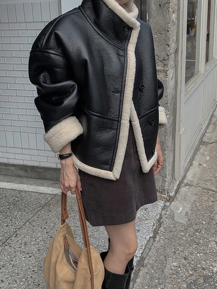 Kış günlerinde hem şık hem de sıcacık bir görünüm arayanlar için tasarlanmış bu deri görünümlü mont, iç kısmındaki yumuşak kürk astarıyla konforu ön plana çıkarıyor. Kontrast kürk detayları, oversize duruşu ve düğmeli kapanışı ile tarzınızı güçlü bir şekilde yansıtmanızı sağlar.