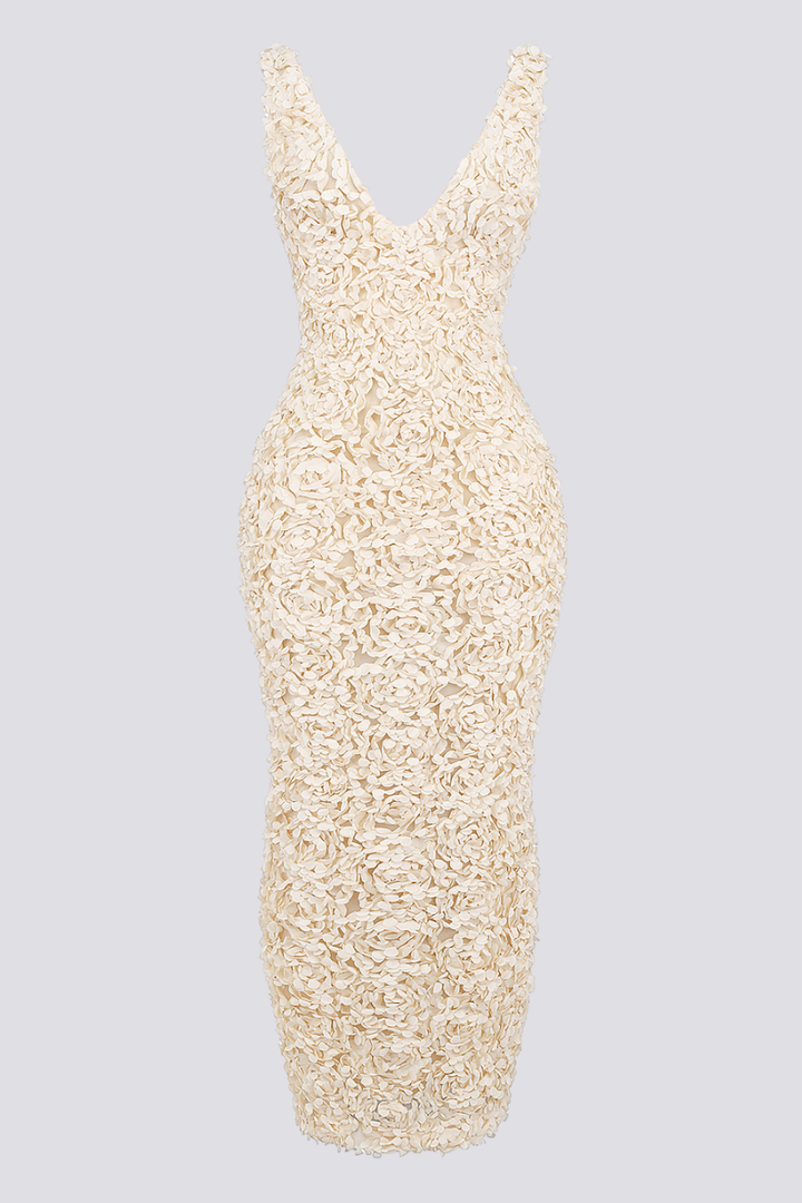 Cyprine Derin Yaka Sırtı Açık Uzun Elbise