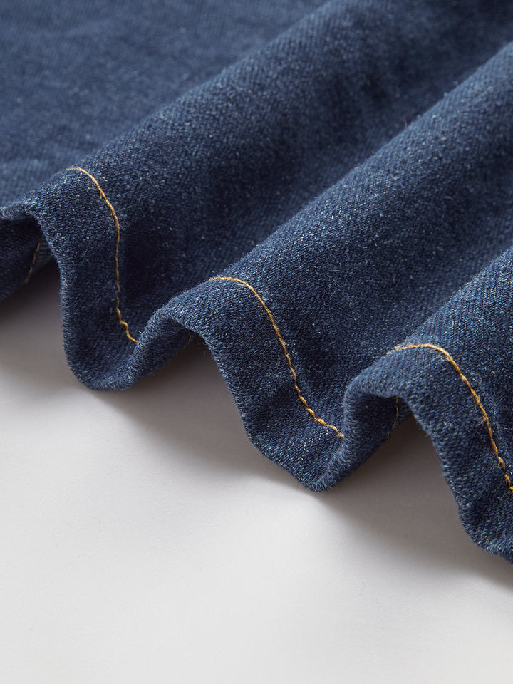 Kravat Yaka Cepli Pileli Denim Uzun Üst – Günlük ve Şık