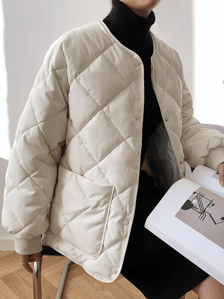 Soğuk havalar için modern bir şıklık! Hafif ve rahat yapısıyla dikkat çeken bu krem renkli kapitone mont, zarif dikiş detayları ve fonksiyonel cepleriyle her kombininiz için ideal bir tamamlayıcıdır.