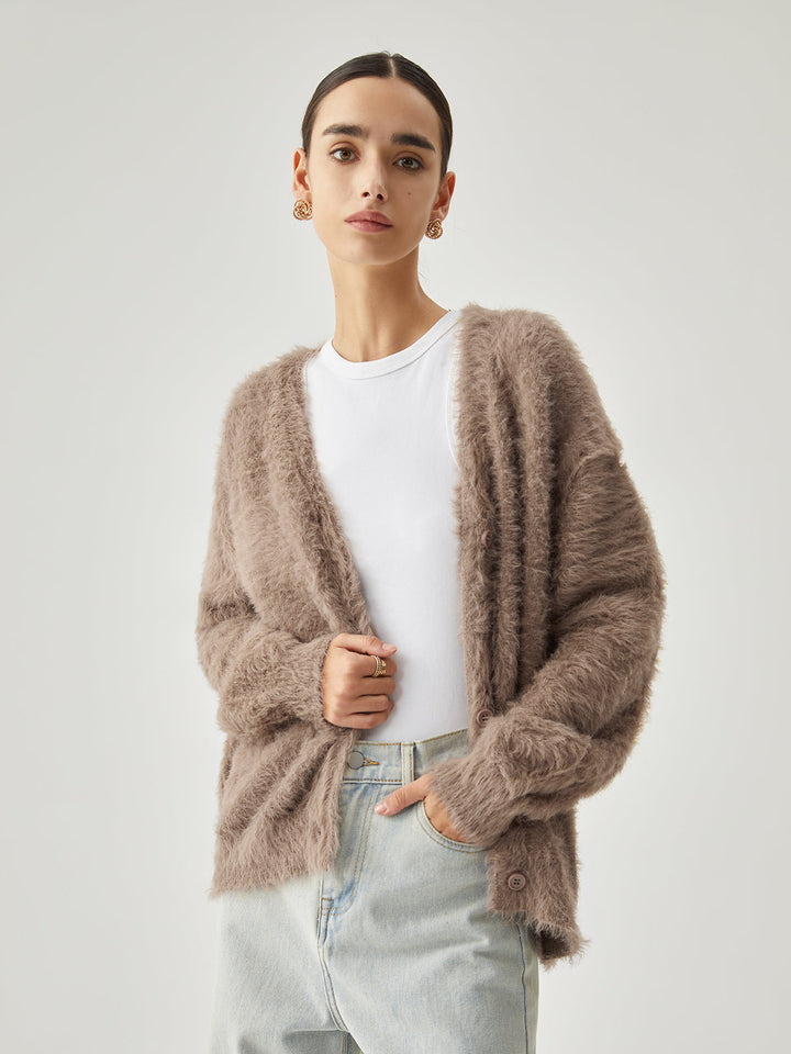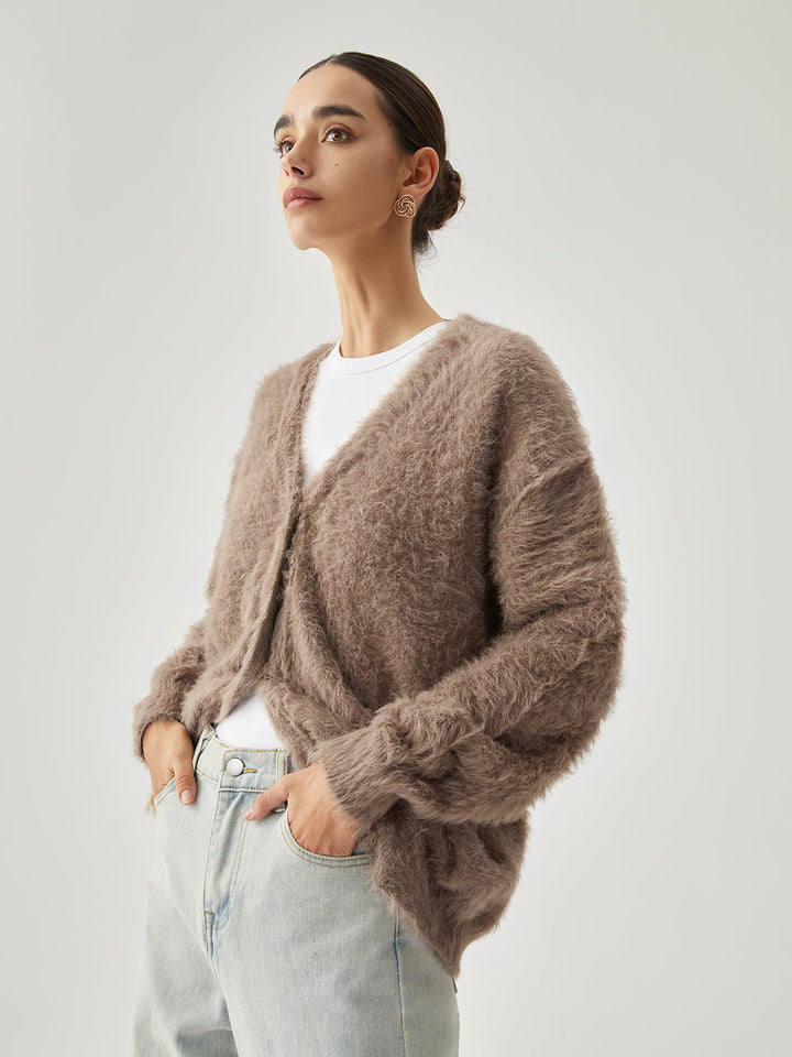 Düğmeli Tüylü Hırka