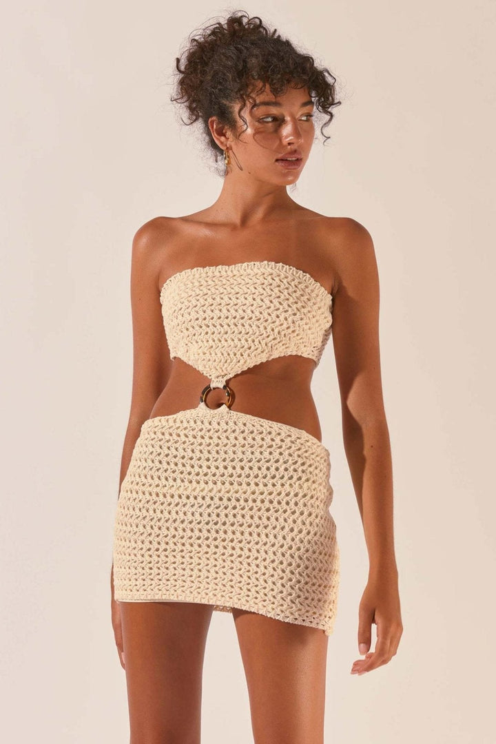 Edna Askısız Kesikli Tığ İşi Mini Elbise