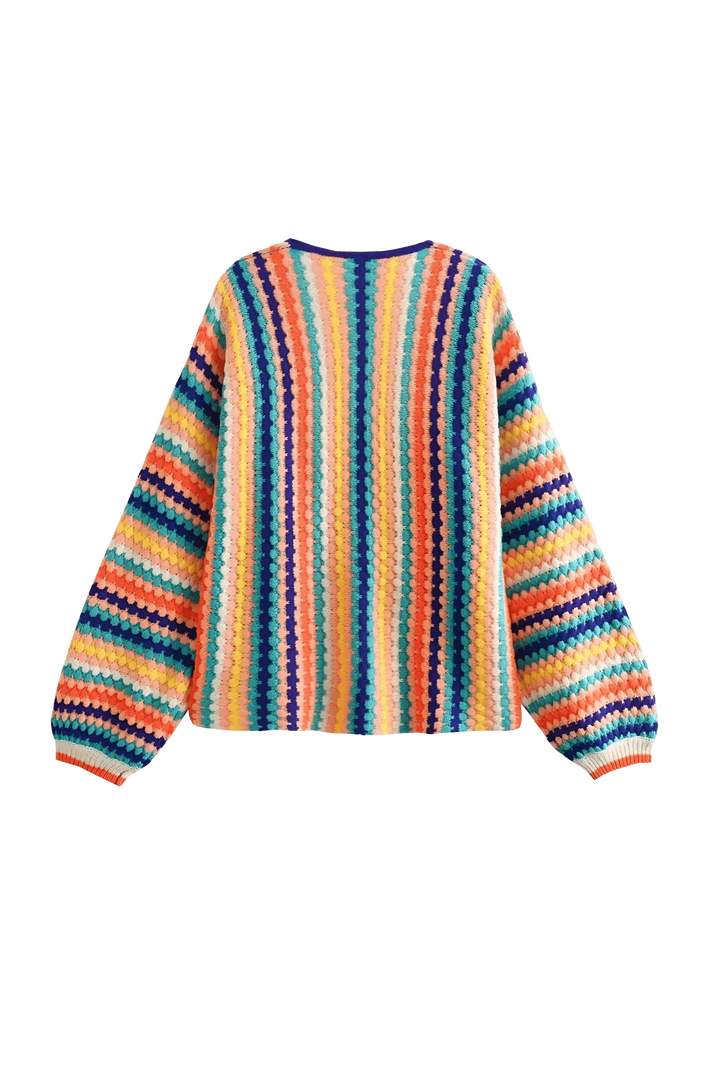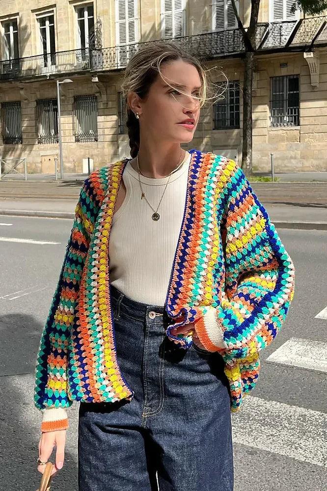 Yumuşak, cilt dostu polyesterden üretilen bu hırka, orta kalınlığı ve mükemmel kırışma direnciyle olağanüstü konfor sunar. Önü açık ve V yakalı tasarım, uzun kollu ve bol kesimle bir araya gelerek rahat ama şık bir siluet sağlıyor.