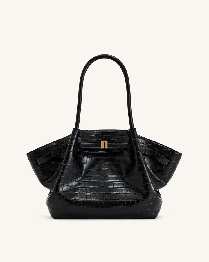 Hana Orta Boy Tote Çanta Siyah Timsah Desenli