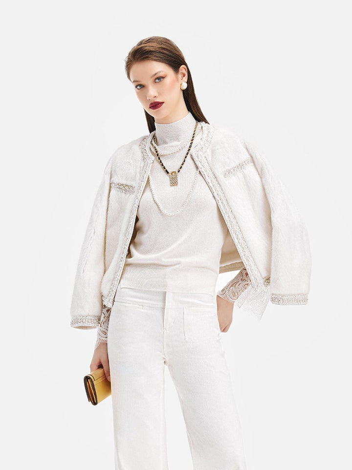 Zarif inci detayları ve modern tasarımıyla bu ceket, sofistike stilinize eşlik ediyor. Hem özel günlerde hem de günlük kombinlerinizde rahatlıkla tercih edebilirsiniz. Şıklığın ve zarafetin buluştuğu bu parça, gardırobunuzun vazgeçilmezi olacak!