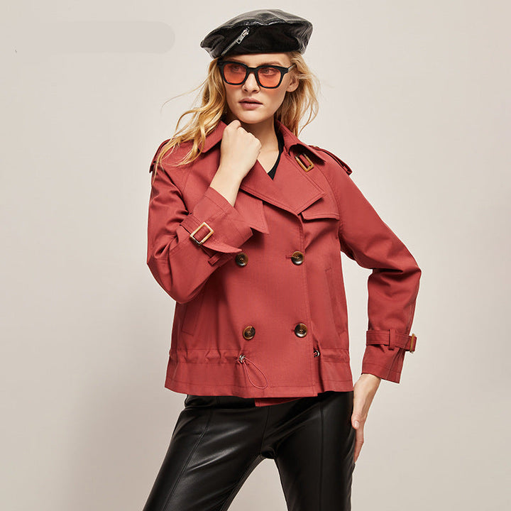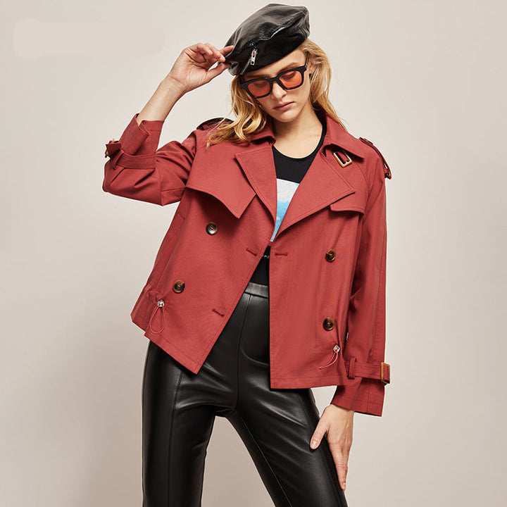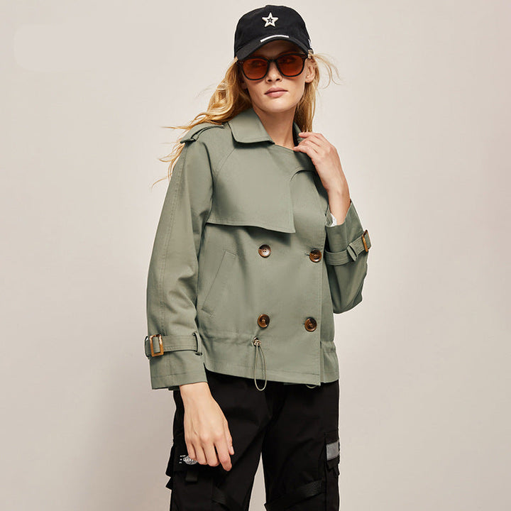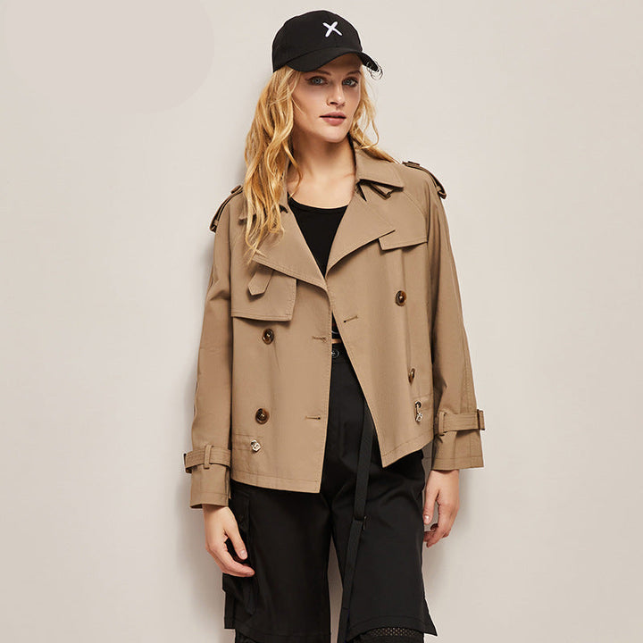 Casual ve modern görünümüyle öne çıkan kısa trençkot, çift sıra düğme detayı ve rahat kesimiyle gündelik stilinize şıklık katar. Bahar ve sonbahar kombinlerinizin kurtarıcı parçası.