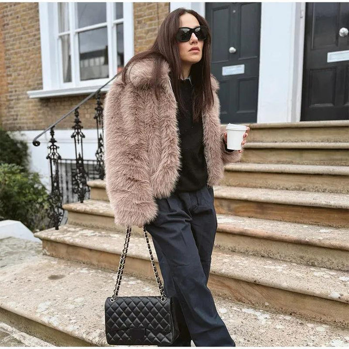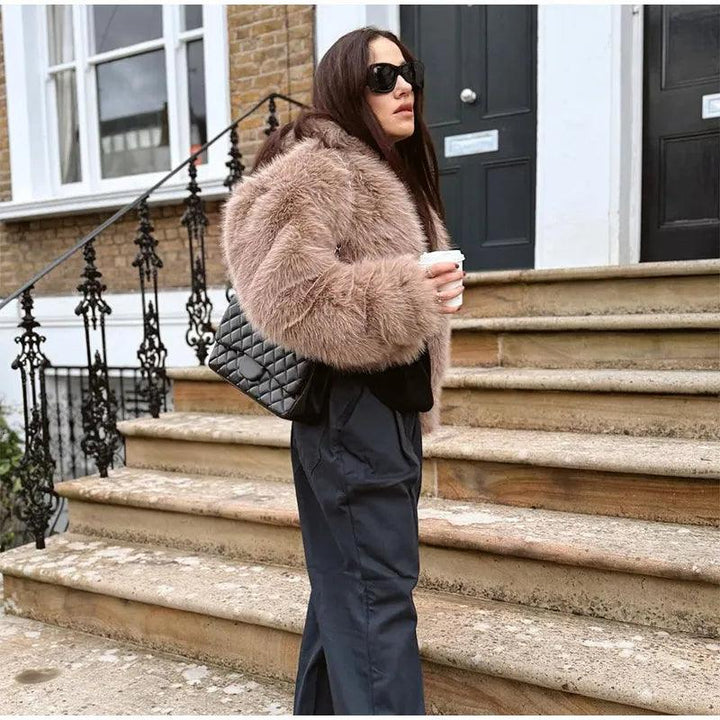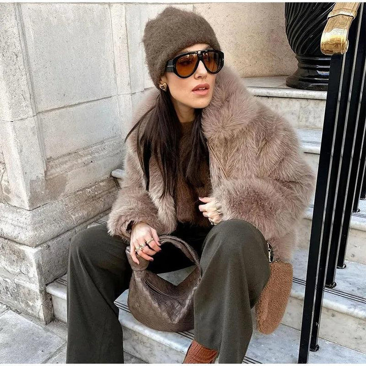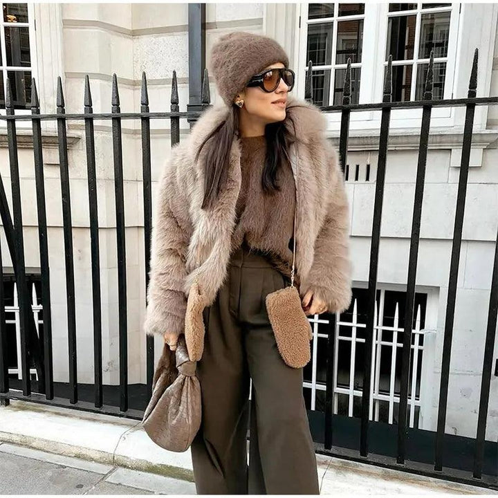 Lüks suni kürk kırpılmış ceket ile kış stilinizi yükseltin. Sıcak kalırken fark yaratmak için mükemmel olan bu ceket, konfor ve şıklığın mükemmel bir karışımıdır.
