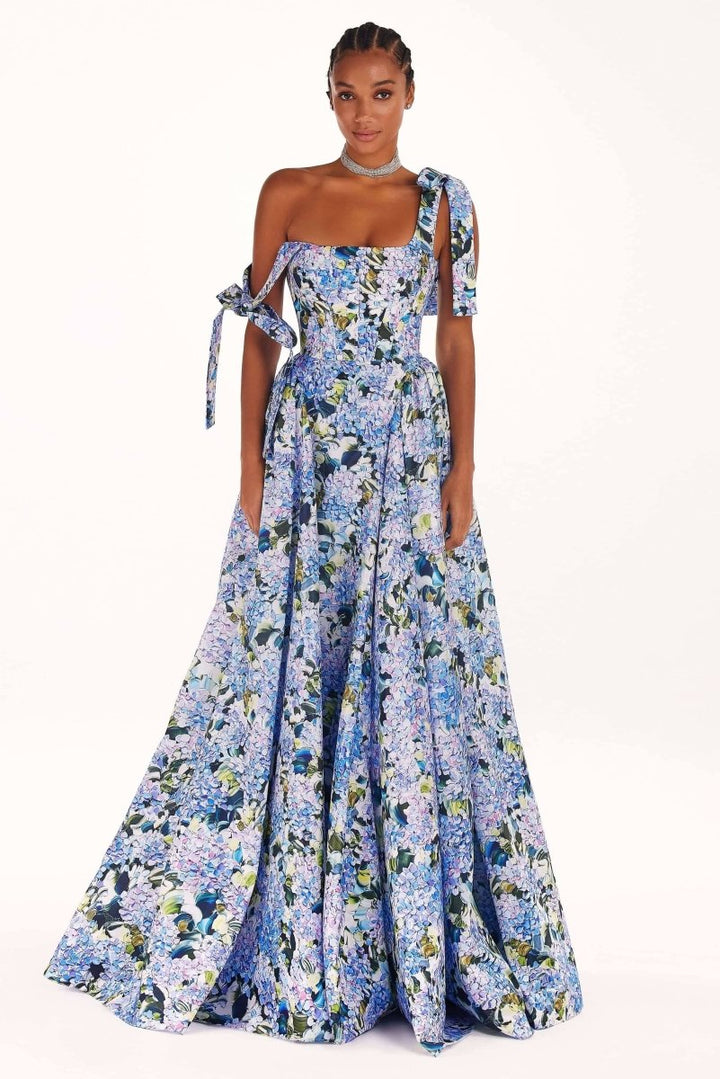Mavi Ortanca Whisper Uzun Elbise