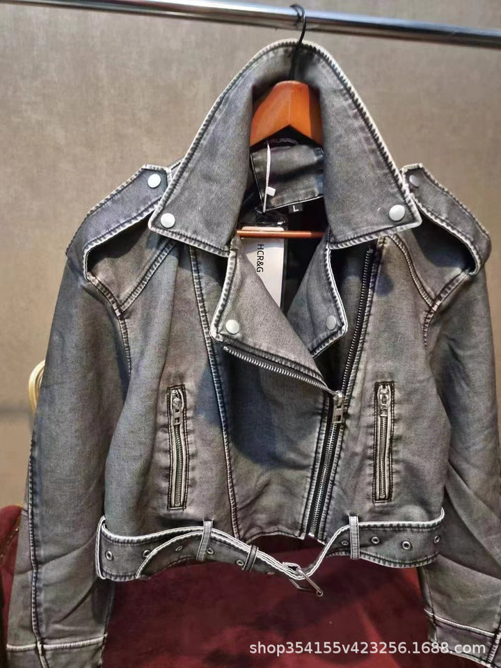 Cesur ve stil sahibi görünümler için tasarlanan gri crop deri ceket, gardırobunuzun yıldız parçası olacak. Belden oturtmalı kemer detayı, fermuar detayları ve güçlü duruşuyla hem şehir şıklığında hem de gece kombinlerinde rahatlıkla kullanabilirsiniz.