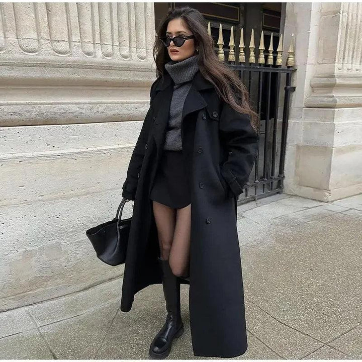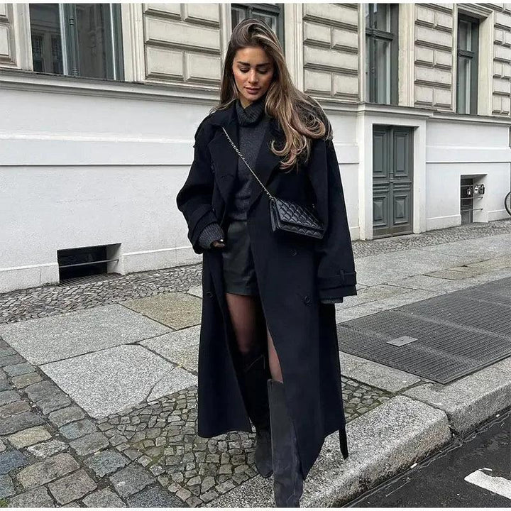 Model Tipi: Yün trençkot – uzun boy, kuşaklı, çift düğmeli