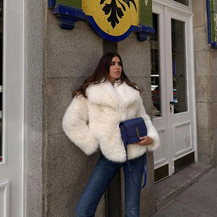 Bu lüks suni kürk kısa mont ile sıcak ve şık kalın. Pelüş, yumuşak dokusu ve zamansız siluetiyle her kıyafete şıklık katmak için mükemmeldir. Akşam etkinlikleri veya kış gezileri için ideal olan bu palto, hem konfor hem de sofistike bir görünüm sağlar. Şık ve rahat bir görünüm için sahip olunması gereken bir parça.