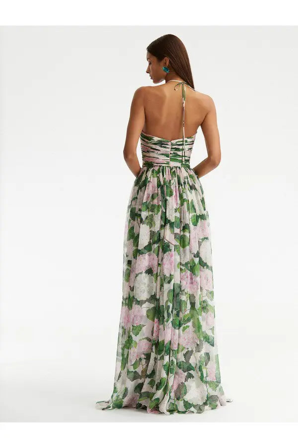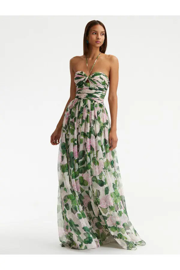 Madelaine Halter Yaka Çiçekli Uzun Elbise