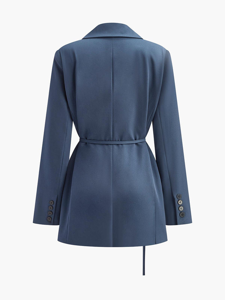 Şık tasarımı ve kemer detayıyla öne çıkan mavi blazer ceket, hem iş hem günlük kombinlerde zarif bir görünüm sunar. Modern ve sofistike bir stil için ideal bir tercih!