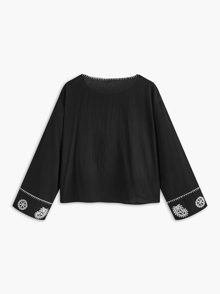 Nakış Detaylı Uzun Kollu Pamuklu Bluz – Rahat ve Şık