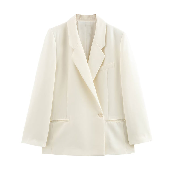 Zamansız şıklığı temsil eden bu ekru blazer, minimalist tasarımı ve modern kesimiyle her gardırobun vazgeçilmezi. Ofis stilinden akşam buluşmalarına kadar her ortamda sofistike bir görünüm sunar. Tek düğmeli yapısı ve sade hatları sayesinde kombinlemesi son derece kolaydır.