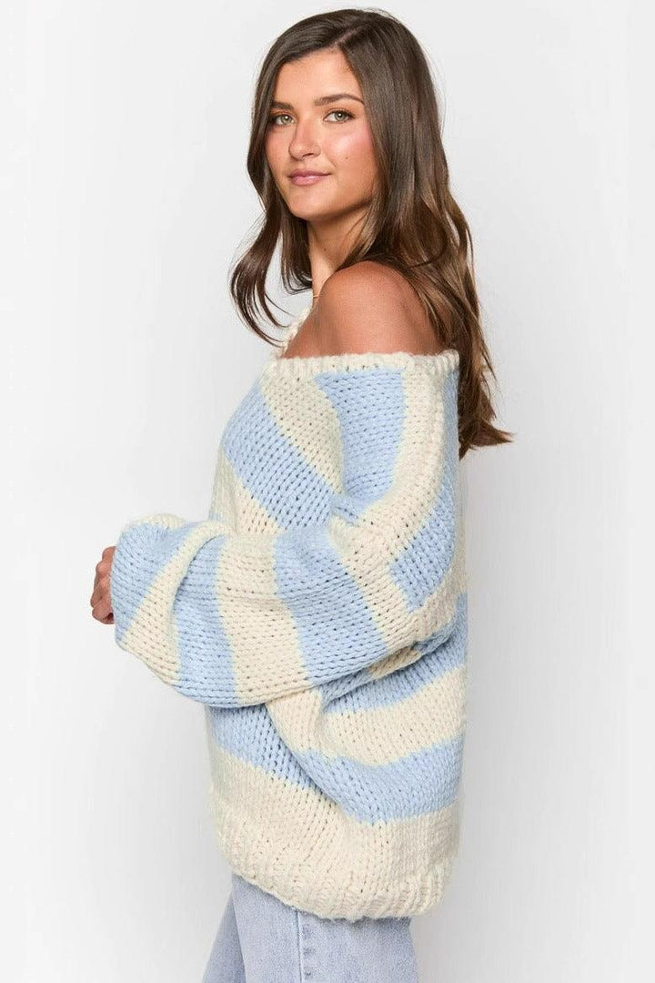 Yumuşacık dokusu ve oversize kalıbıyla konforu zirveye taşıyan bu çizgili triko kazak, salaş görünümüyle günlük kombinlerin vazgeçilmez parçası. Açık omuz detayıyla feminen bir dokunuş katarken pastel tonlu çizgileriyle enerjik ve fresh bir tarz sunar.