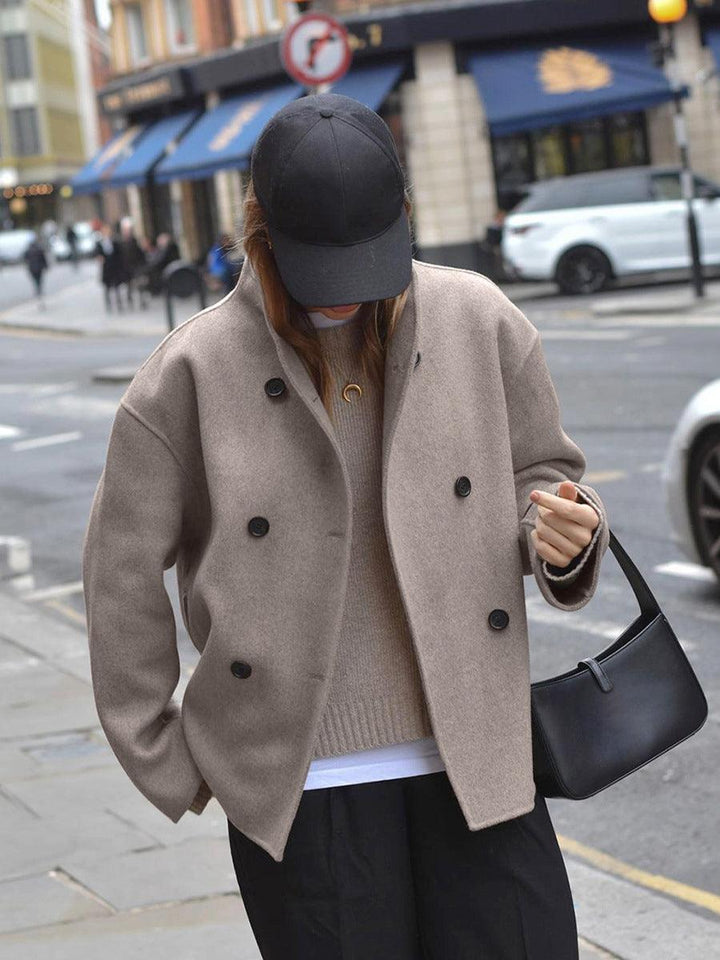 Kruvaze kısa kaban – güçlü ve sofistike hatlarıyla öne çıkan tasarım.