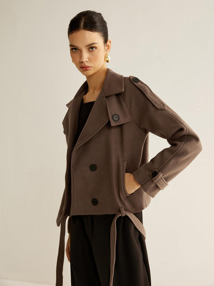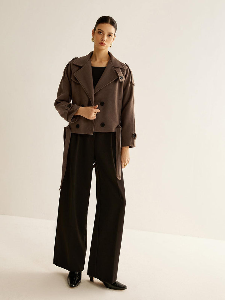 Şıklık ve konforu bir arada sunan bu kahverengi kısa trençkot ceket, klasik detayları ve modern kesimiyle her kombininize sofistike bir dokunuş katıyor. Günlük kullanımdan özel anlara kadar stilinizi tamamlayacak bir parça!
