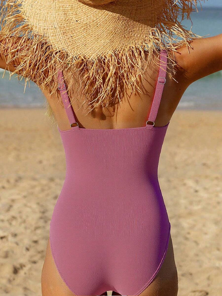 V Yaka Kalın Askılı Zarif Tek Parça Mayo