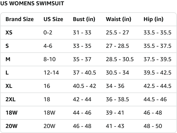 | XS | 34 | 81–84 | 61–64 | 86–91 | 6 | 32 | 6 |