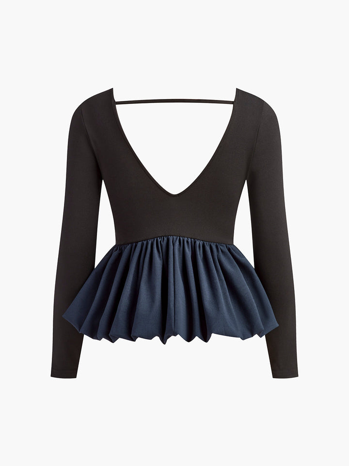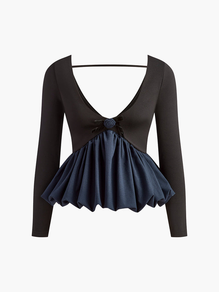 Fiyonk Detaylı Uzun Kollu V Yaka Bluz – Romantik ve Zarif