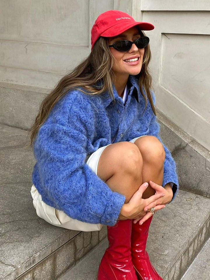 Soft Cloud Mohair Ceket’i beyaz denim pantolon ve basic bir tişört ile kombinleyerek sade ve şık bir görünüm oluşturabilirsiniz. Renkli bir şapka ve minimal bir çanta ile görünümünüze dinamik bir dokunuş ekleyebilirsiniz. Günlük kullanımlarda sneaker ile sportif, topuklu botlarla ise zarif bir stil yaratabilirsiniz.