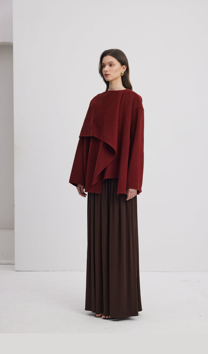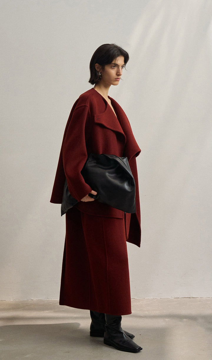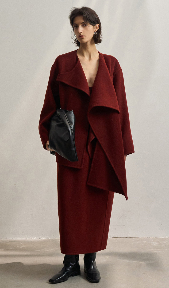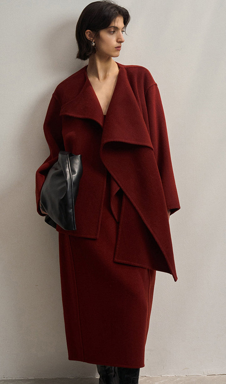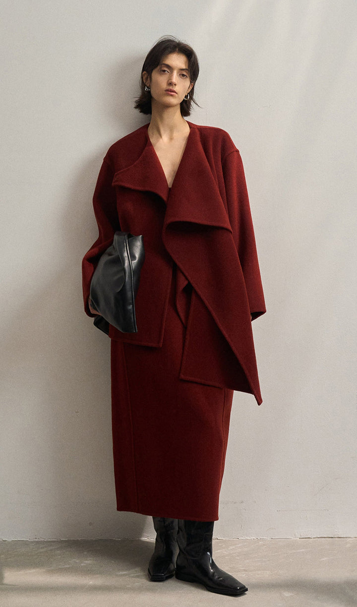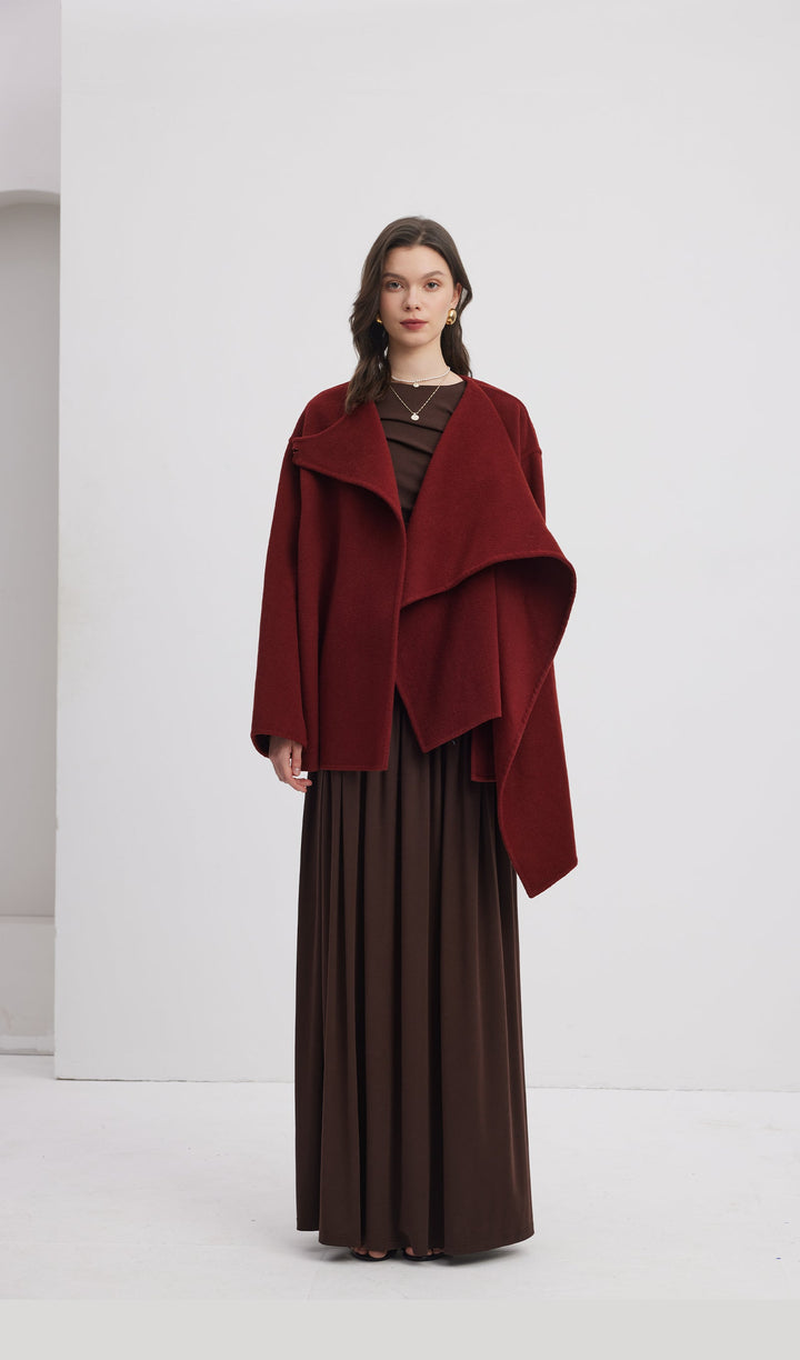 Zamansız şıklığın modern bir yorumu olan bordo oversize uzun kaban, rahat kalıbı ve dökümlü tasarımıyla güçlü bir stil sunuyor. Yoğun dokusu ve uzun boy kesimi sayesinde soğuk havalarda hem koruyucu hem de sofistike bir görünüm sağlıyor. Şehir şıklığının vazgeçilmez parçası olan bu kaban, her adımda elegan bir duruş kazandırıyor.