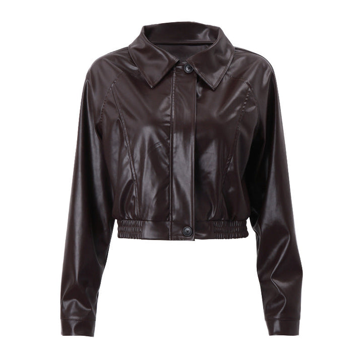 Kahverengi Deri Crop Ceket