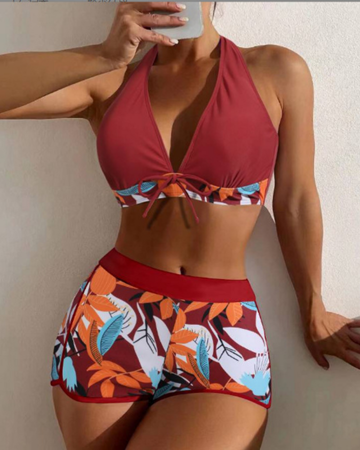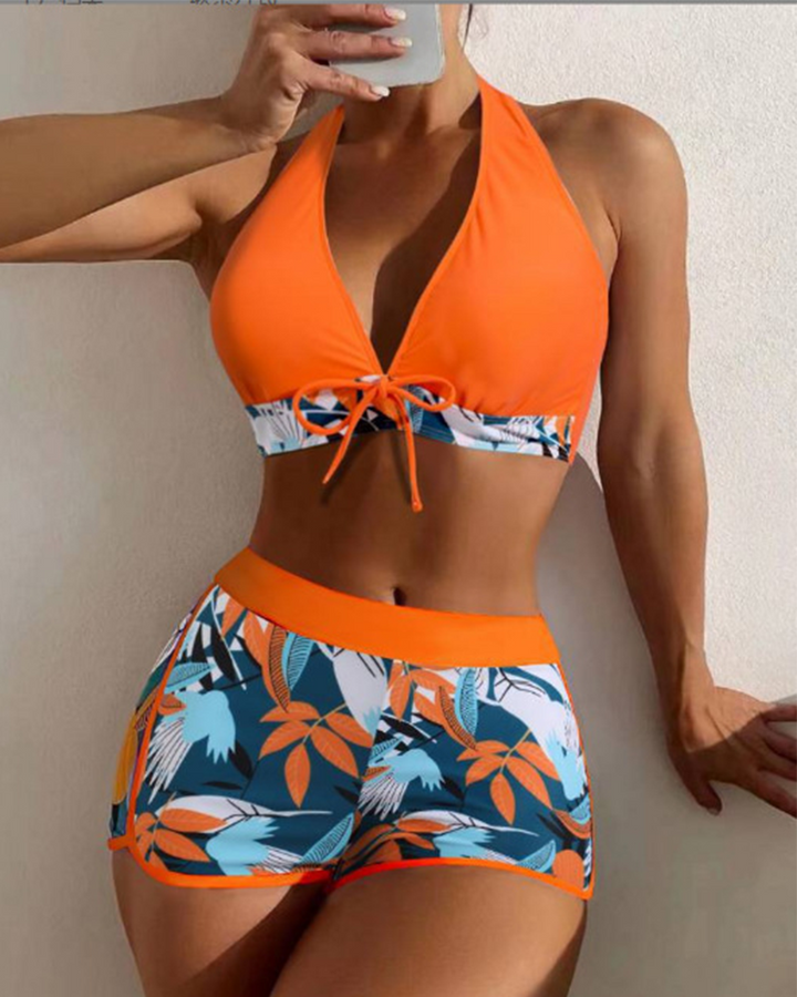 Yüksek Bel Patchwork Spor Bikini Takımı
