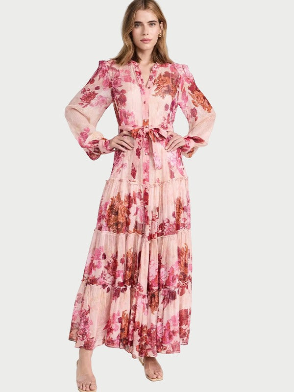 Sylvia Uzun Kollu Çiçekli Maksi Elbise