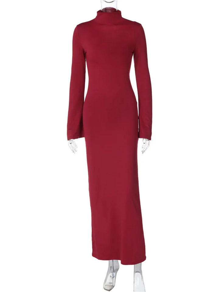 Zamansız şıklığıyla öne çıkan bordo uzun kollu triko maxi elbise, fit kesimiyle vücudu sararak feminen bir duruş kazandırıyor. Yüksek yaka detayı ve dökümlü uzun kolları ile hem modern hem de sofistike bir hava sunuyor. Gün boyu konforlu kullanım sağlarken akşam davetlerinde de dikkat çekici bir tercih oluyor.