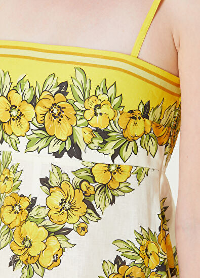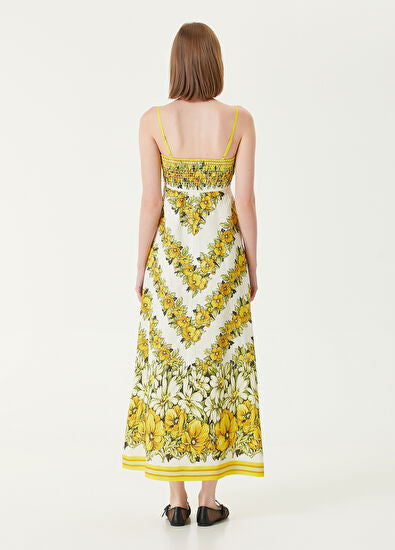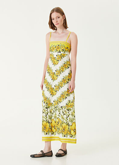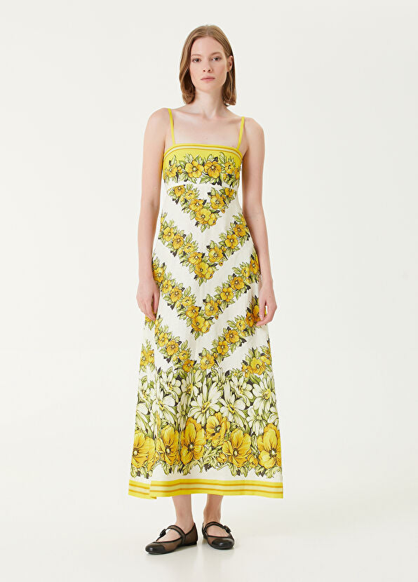 Tristane Spagetti Çiçekli Uzun Sarı Elbise