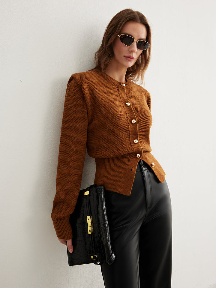 Bu şık ve rahat kıyafet, %75 Akrilik, %15 Yün ve %10 Naylon karışımından üretilmiştir. Düğmeli tasarımı ile hem günlük hem de özel günlerde tercih edebileceğiniz zarif bir seçenektir. Orta kalınlıkta dokusu sayesinde her mevsim rahatlıkla giyilebilir.