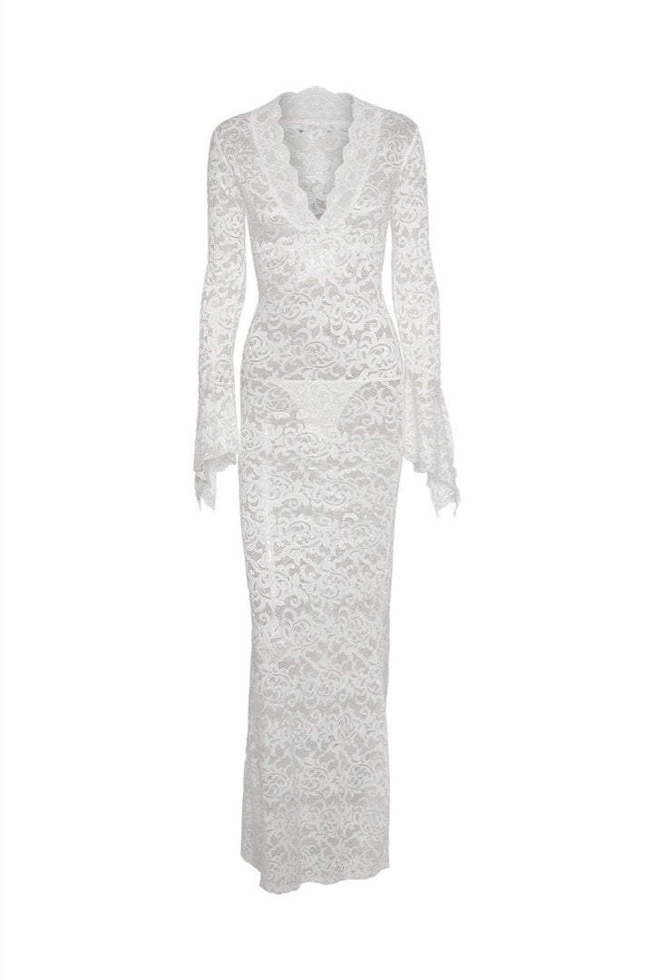 Virginia Şeffaf Dantel Denizkızı Uzun Elbise