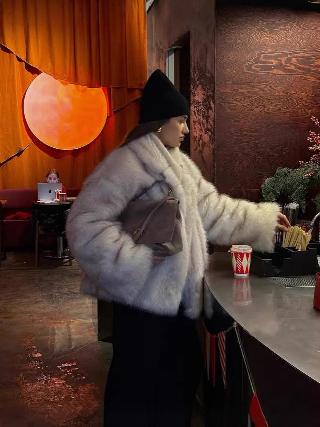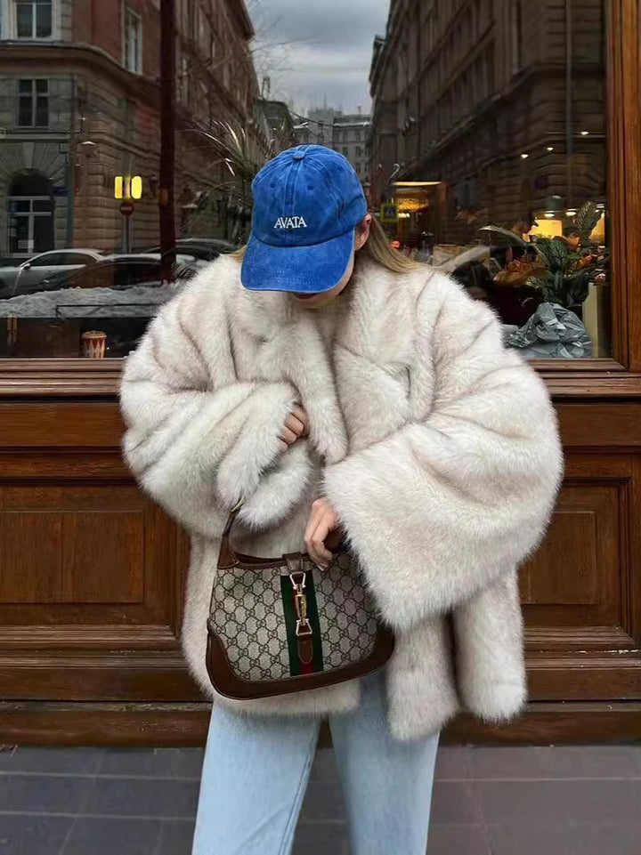 Detay: Yoğun kürk dokusu, ekstra hacimli kollar