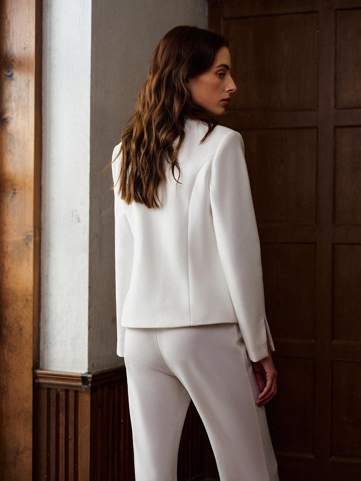 arif kesimi ve şık zincir tokalı detaylarıyla dikkat çeken bu beyaz blazer ceket, sofistike bir tarz sunuyor. Hem iş hem özel davet kombinleriniz için mükemmel bir tercih!